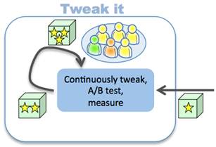 Tweak It = Continuously improve the product.  This is really an end state; the product stays in Tweak It until it is shut down or reimagined (= back to Think It).